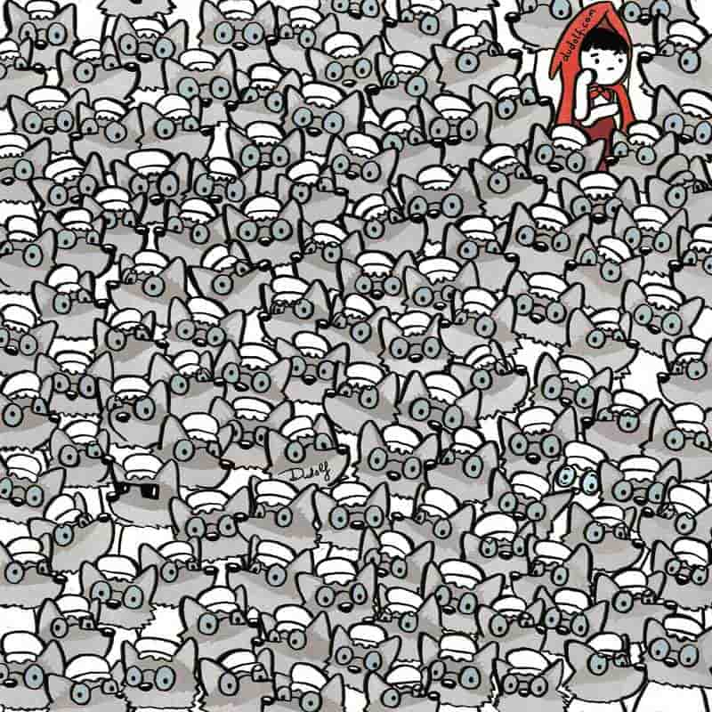Optical Illusion IQ Test – Find Grandma Among Wolves