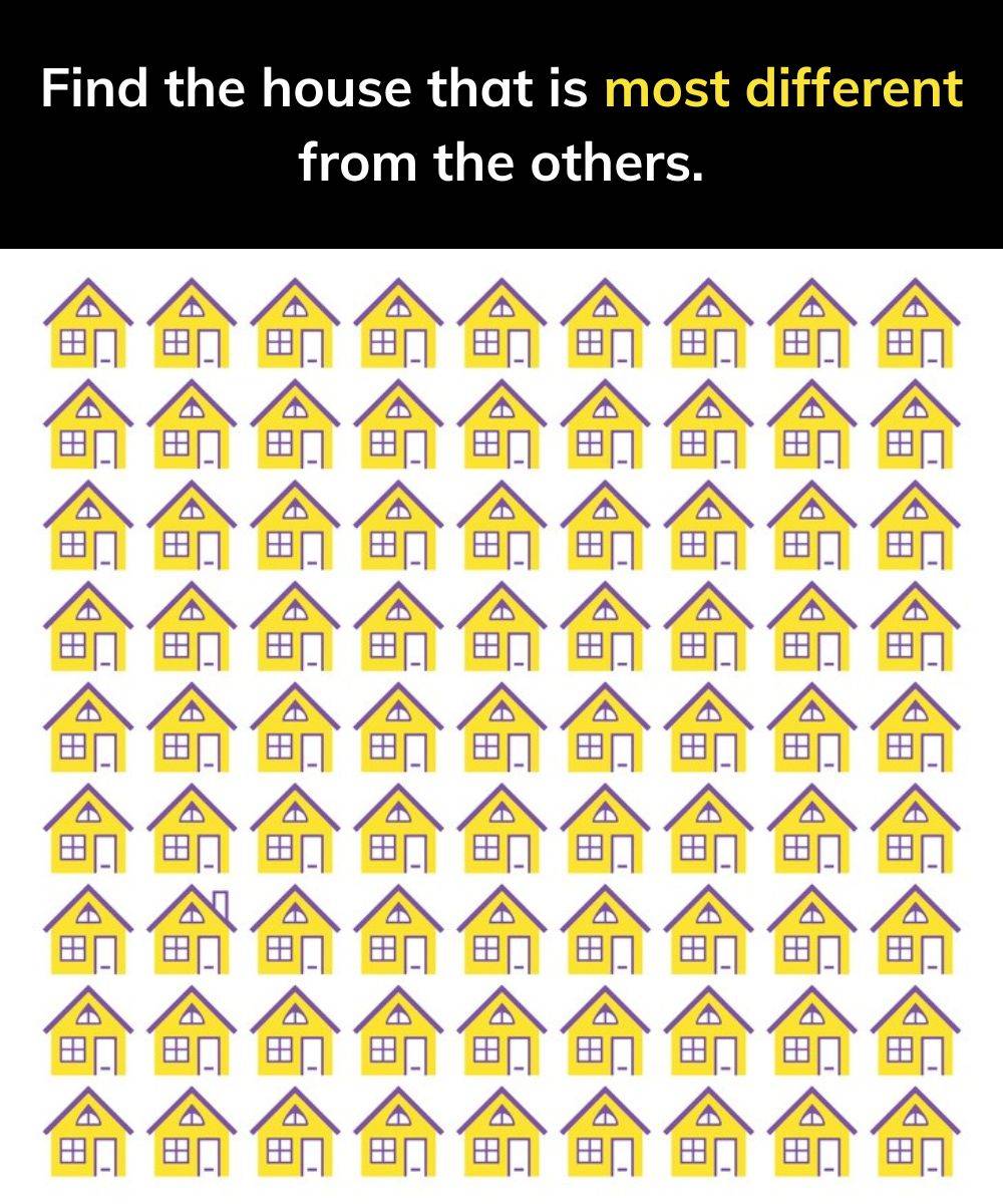 Take a close look at the image below. At first glance, these houses might all look the same, but there’s one house that stands out from the rest. It’s different, and your task is to find it!