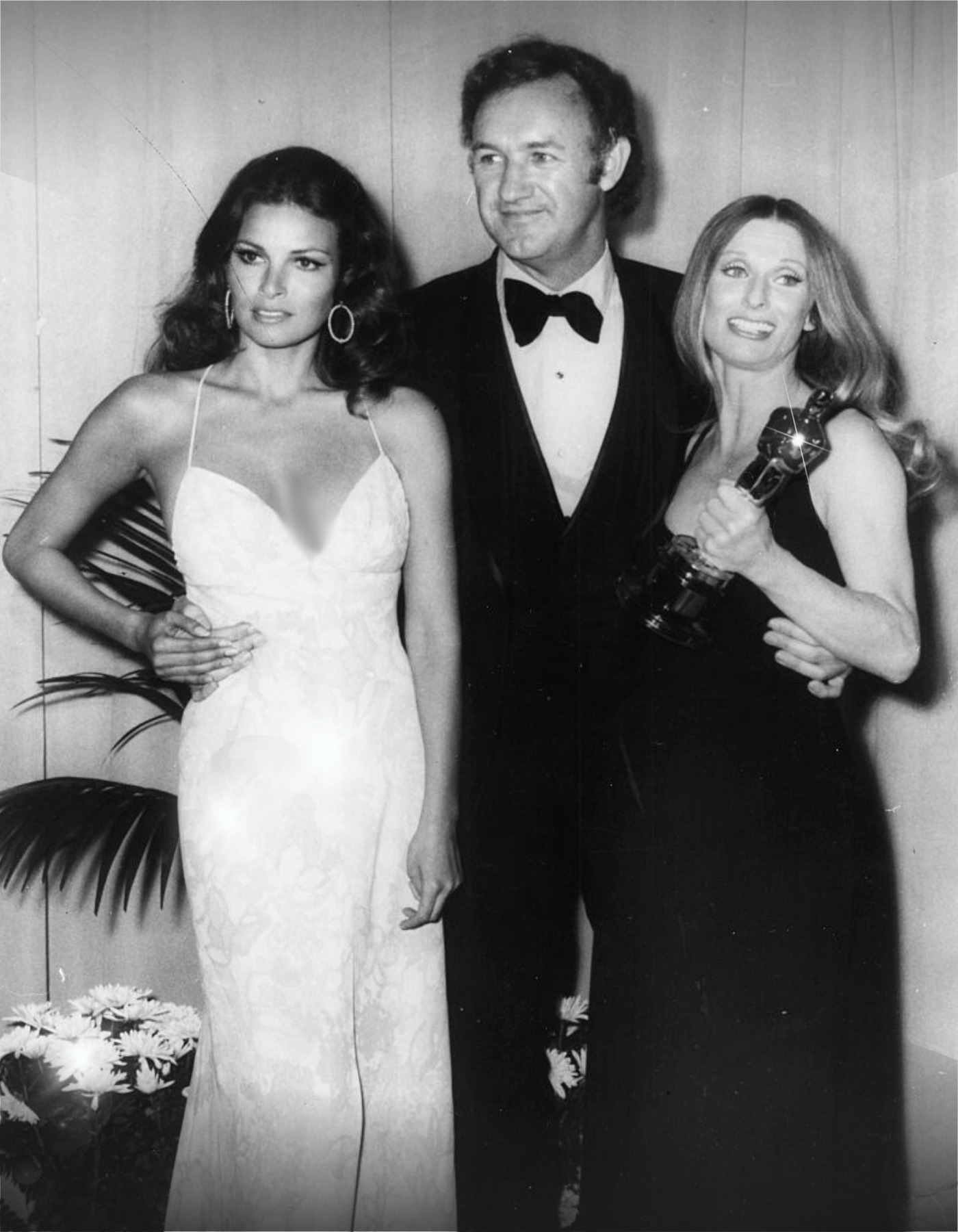 Photographs from the night, such as the iconic image of Raquel Welch, Cloris Leachman, and Gene Hackman together, capture the essence of an industry in flux, bridging the past and future of cinema.