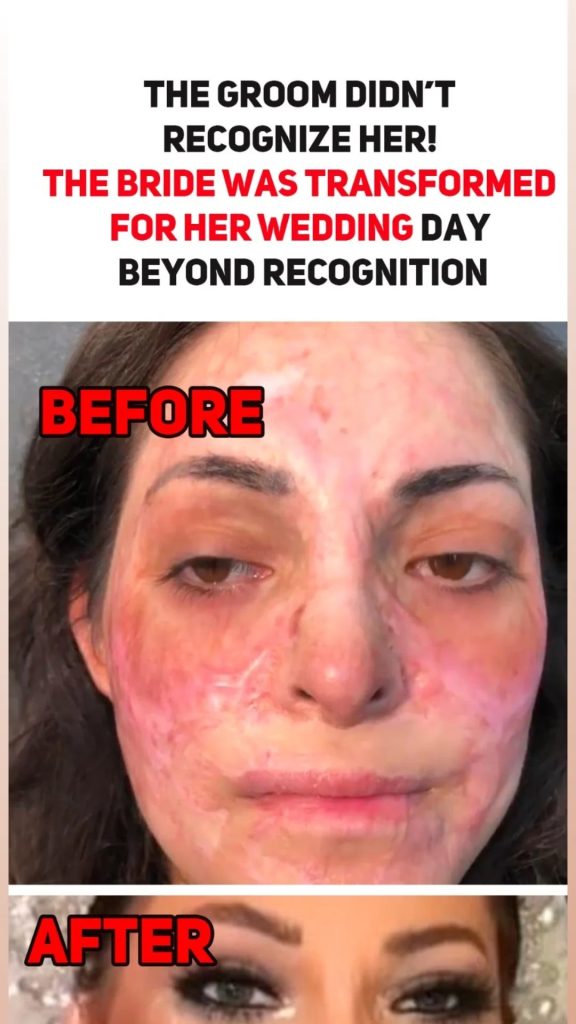 The makeup artist worked magic, carefully covering the bride’s skin imperfections and enhancing her natural beauty. The result was breathtaking, and the bride radiated confidence as she stood at the altar. She later shared the before-and-after photos online, and the response was overwhelming. People couldn’t believe their eyes, calling the makeup artist a true magician and praising the bride for her stunning appearance.