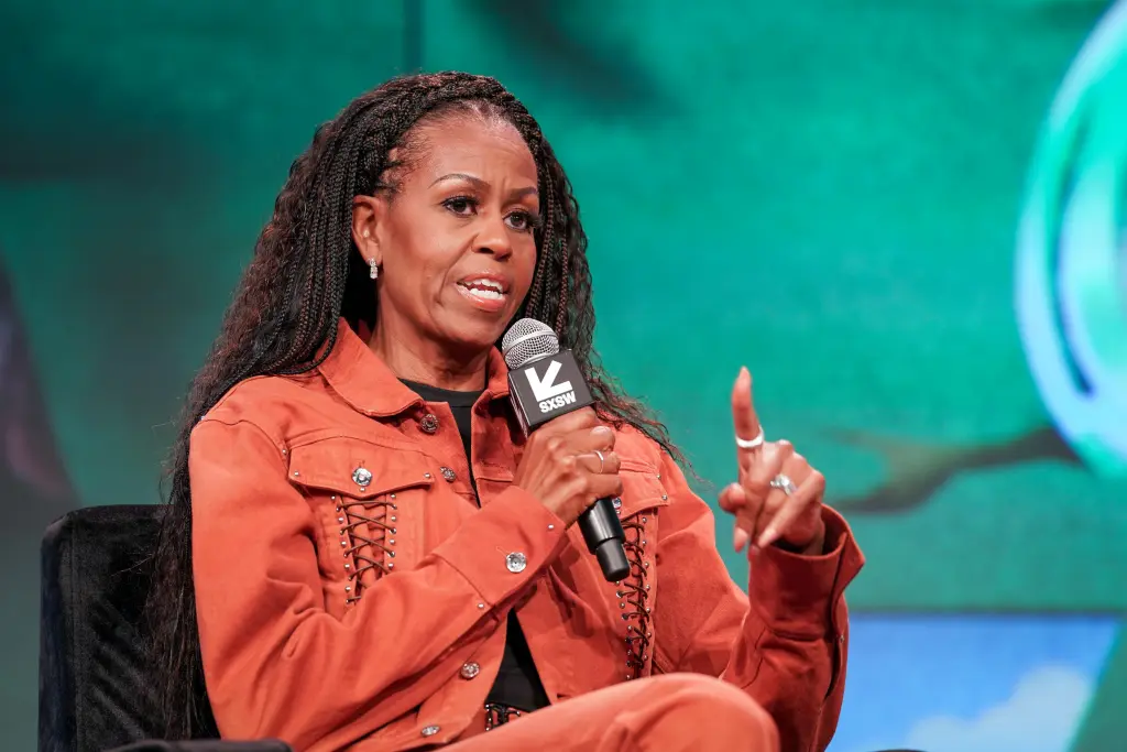 On Thursday, Obama appeared alongside her brother, Craig Robinson, at the live taping of their new podcast, “IMO,” at SXSW in Austin, Texas.