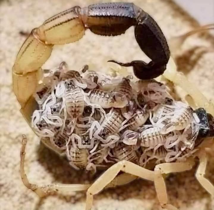 In the wild, a mother scorpion embodies one of the most heartbreaking examples of selfless sacrifice in nature. As she carries her tiny babies on her back, she endures every hardship to ensure their survival.