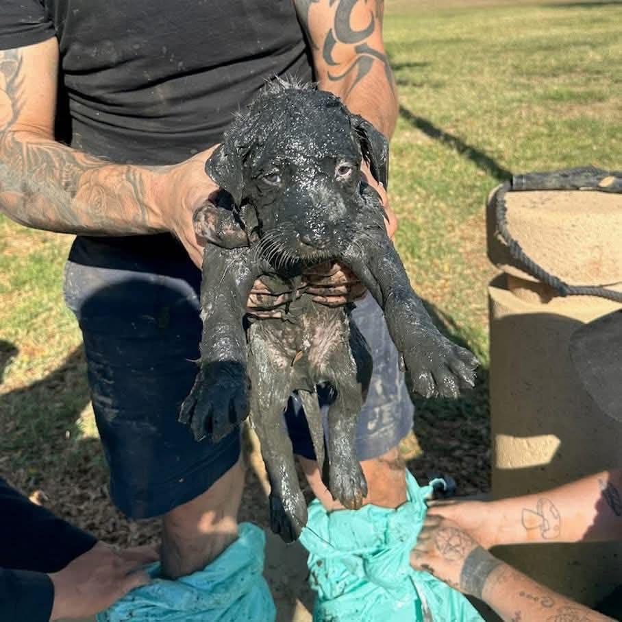 The pup was all covered in mud, and the photos of her rescue were soon shared all over the social media, with the public praising the officers who came to her rescue.