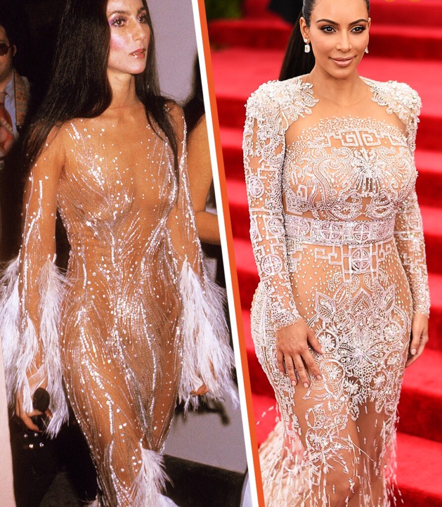 Fast forward to the Met Gala, and Kim Kardashian arrives in a gown that instantly stirs déjà vu. Sparkling, sheer, and sculpted to perfection, it was clear this wasn’t just another glamorous look. It was a deliberate nod to Cher’s original masterpiece—a tribute from one modern-day trendsetter to the woman who changed the game.