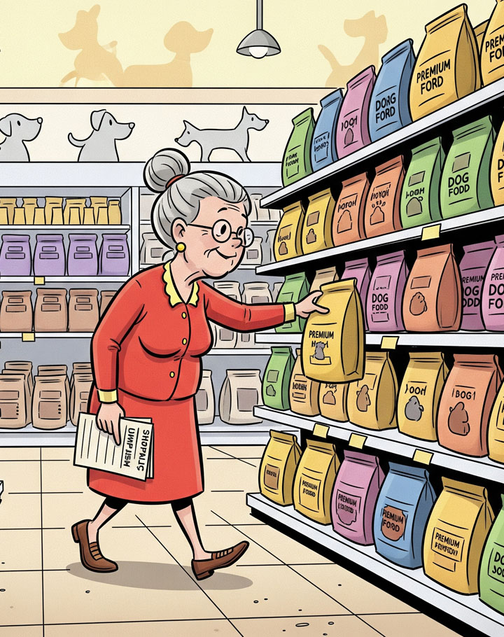 she went to pay for it and the cashier said you can’t buy that dog food we need evidence that you have a dog, so she bought in her dog and she got the dog food.
