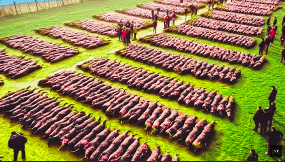 In the video, hundreds of sheep are seen spread out over vast fields in elaborate patterns that include concentric circles, spirals, and grids.