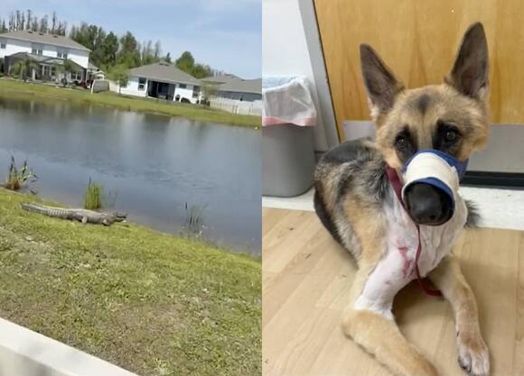Zeus, the Al-Khatib family’s beloved German shepherd, suffered serious injuries during a surprise alligator attack Monday evening. The dramatic incident unfolded when Zeus was in the backyard of his Wesley Chapel home.