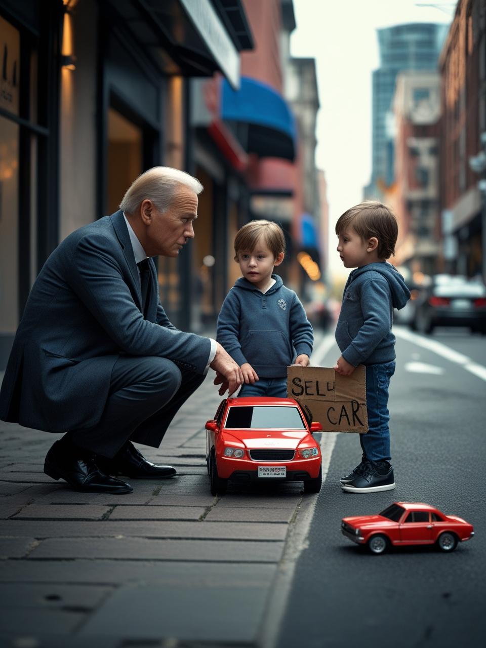 They didn’t notice at first. They rose from the bench when no one bought the car. Picked it up gently, as if it were something more than plastic. Walked through the city, hand in hand, toward the edge of the neighborhoods tourists don’t visit.