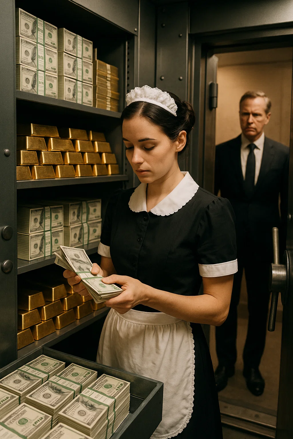 Clara stepped into the study with a dust cloth in hand. She halted the moment she saw the open safe. For a second, she scanned the room, uncertain. Arthur’s pulse quickened. This is it, he thought. No one walks away from temptation like that.