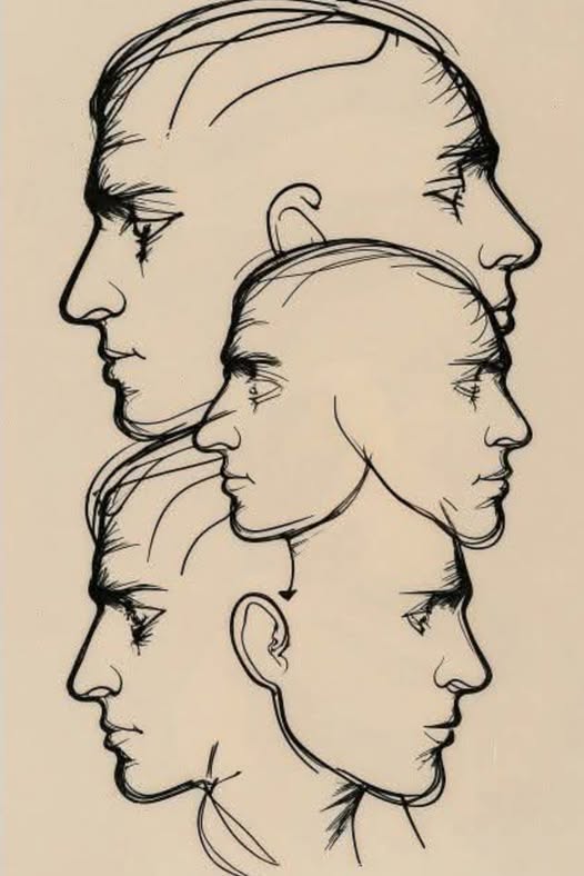 At first glance, the image seems simple: a line-drawn profile of a man’s head. But look again—and suddenly, you see multiple heads nestled within one another like Russian nesting dolls. This isn’t just a portrait. It’s a brain-bending, perception-warping puzzle that plays with your sense of space, proportion, and identity.