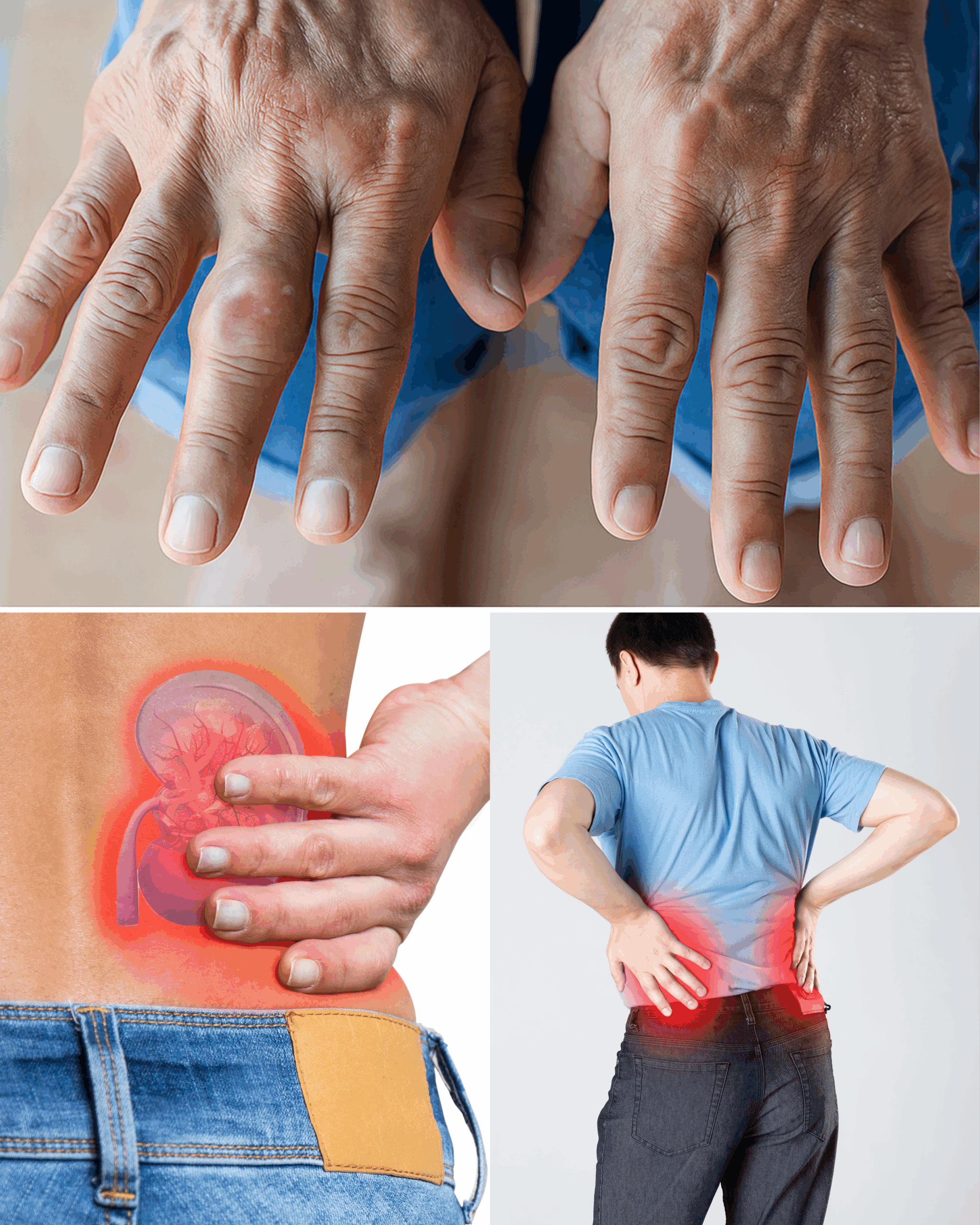 - Gout raises uric acid → Uric acid damages kidneys → Kidneys can’t filter uric acid → Uric acid rises further → More gout attacks