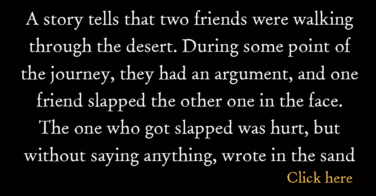 A story tells that two friends were walking through the desert. During some point of the journey, they had an argument, and one friend slapped the other one in the face.