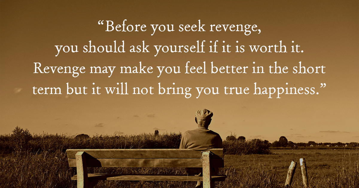 The wise old man replied, “Before you seek revenge, you should ask yourself if it is worth it. Revenge may make you feel better in the short term but it will not bring you true happiness.”