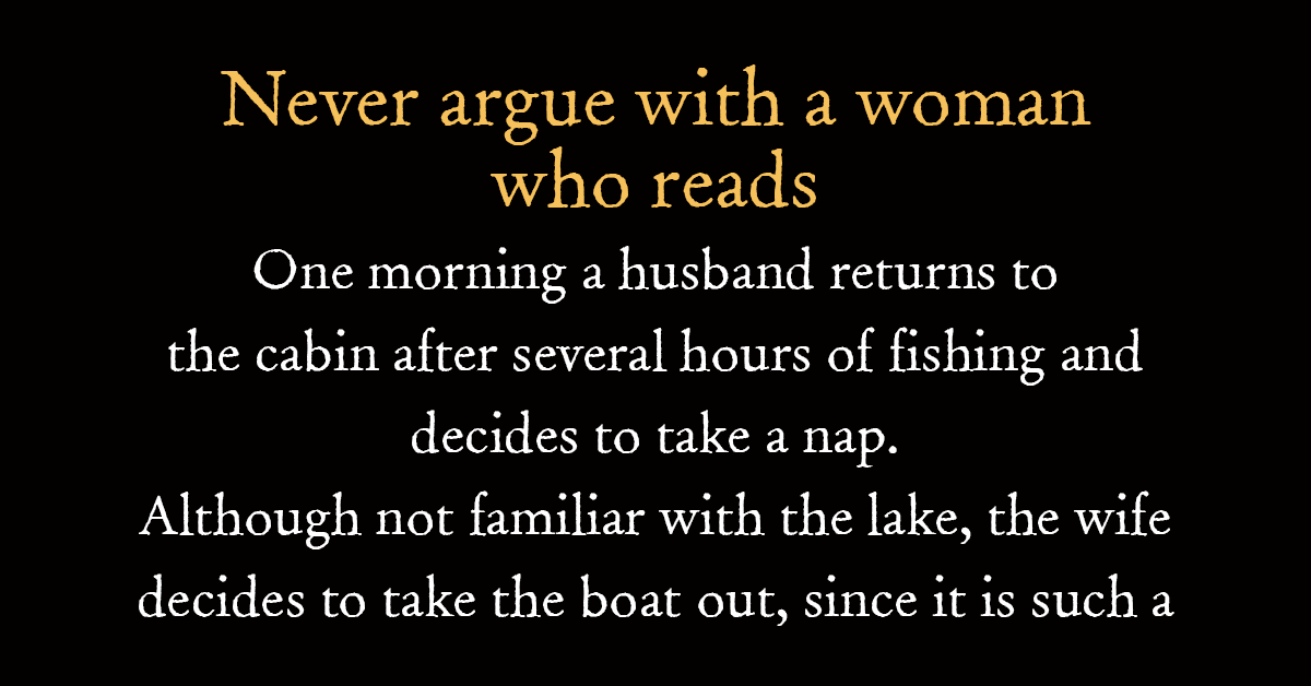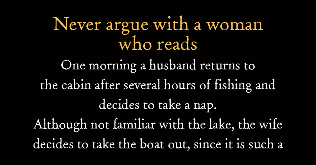 MORAL: Never argue with a woman who reads. It’s likely she can also think.