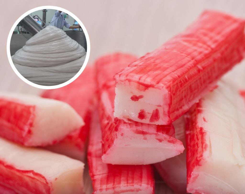 According to the footage, the principal ingredient in crab sticks is not freshly collected crab meat, but rather a blend of other ingredients masterfully sculpted to simulate the appearance and flavor of crab.