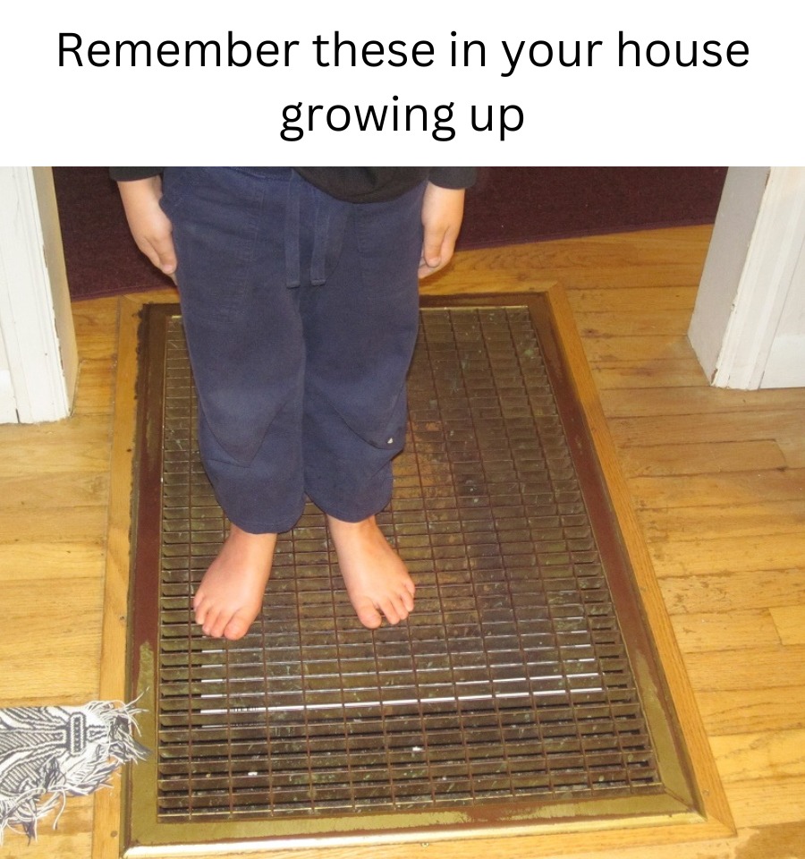Memories: Personal experiences with old floor furnaces often evoke strong feelings of nostalgia. For many, standing over the furnace with a flannel nightgown, feeling the heat, and then snuggling into a warm bed is a vivid and cherished memory of childhood or family life.