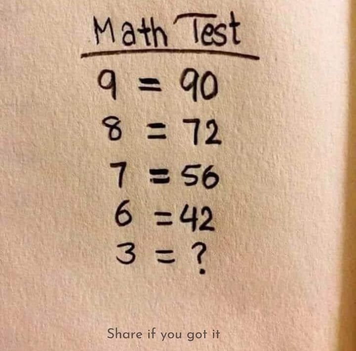 Share Facebook Pinterest Reddit Telegram Copy Link Only a genius can do this math test9 x 10 = 90 8 x 9 = 72.7 x 8 = 566 x 7 = 42 5 x 6 = 304 x 5 = 20so the answer is3 x 4 = 12