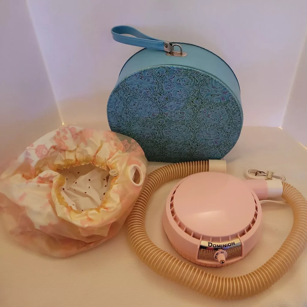 One of the key features of this vintage hair dryer is its portability. Unlike modern, bulky dryers, the Dominion model was designed to be compact and easy to store. Its base unit is typically lightweight and can be easily carried or tucked away in a closet, while the bonnet is often made from a soft, pliable material that can be folded for convenience.