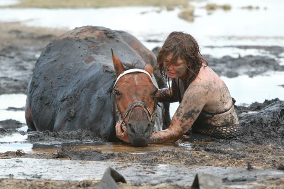 Nicole’s daughter and her horse managed to get escape, but she and Astro sank deeper into the mud. Astro was soon up to his neck in clay and risked choking to death. Nicole spent three hours by Astro’s side in a battle of life and death.