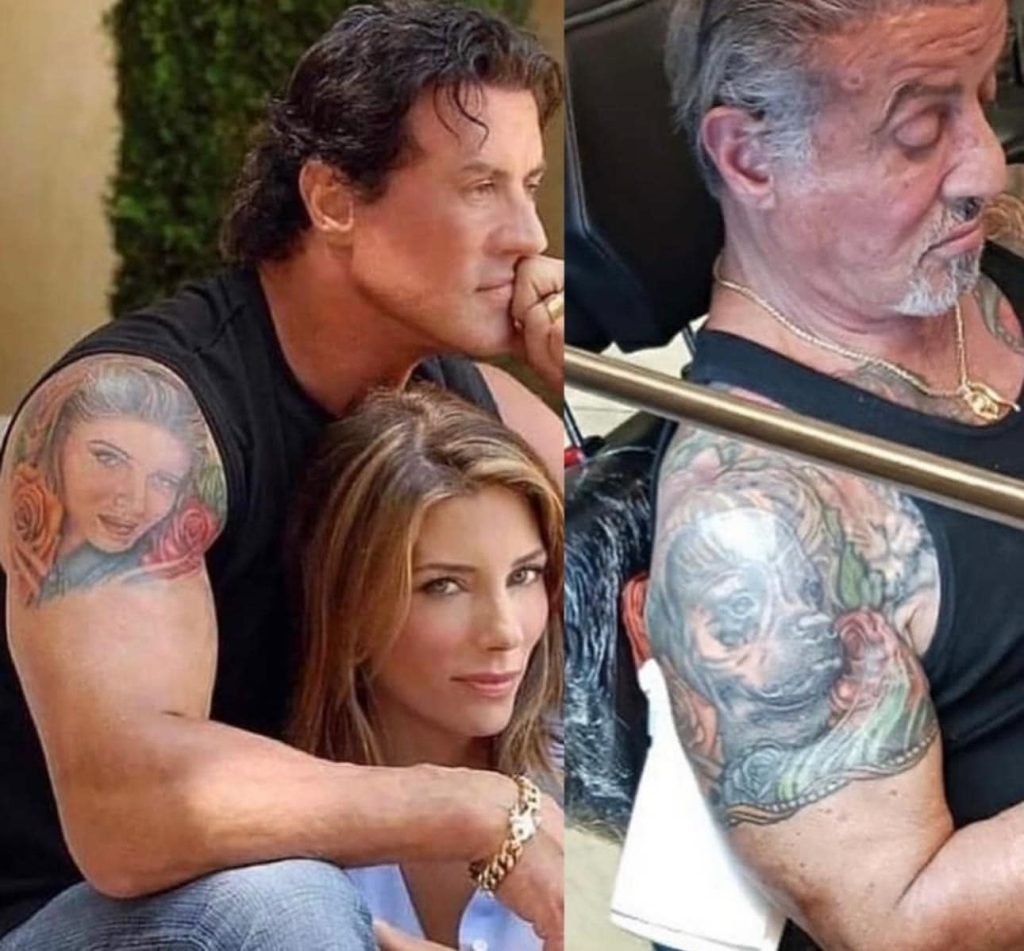 However Stallone’s publicist insisted there are no problems between the A-List pair and it’s all a misunderstanding over a botched refresh of his wife’s portrait on his arm.